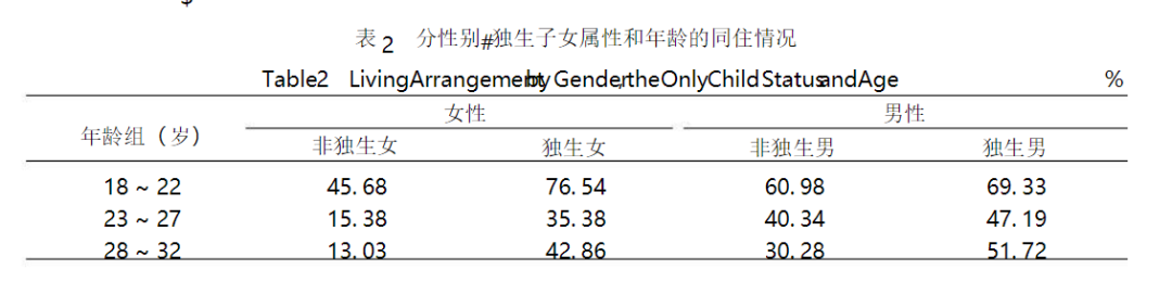 下图出自南开大学人口与发展研究所原新教授的一篇论文,文章统计了一千多户家庭父母与子女居住的情况:
